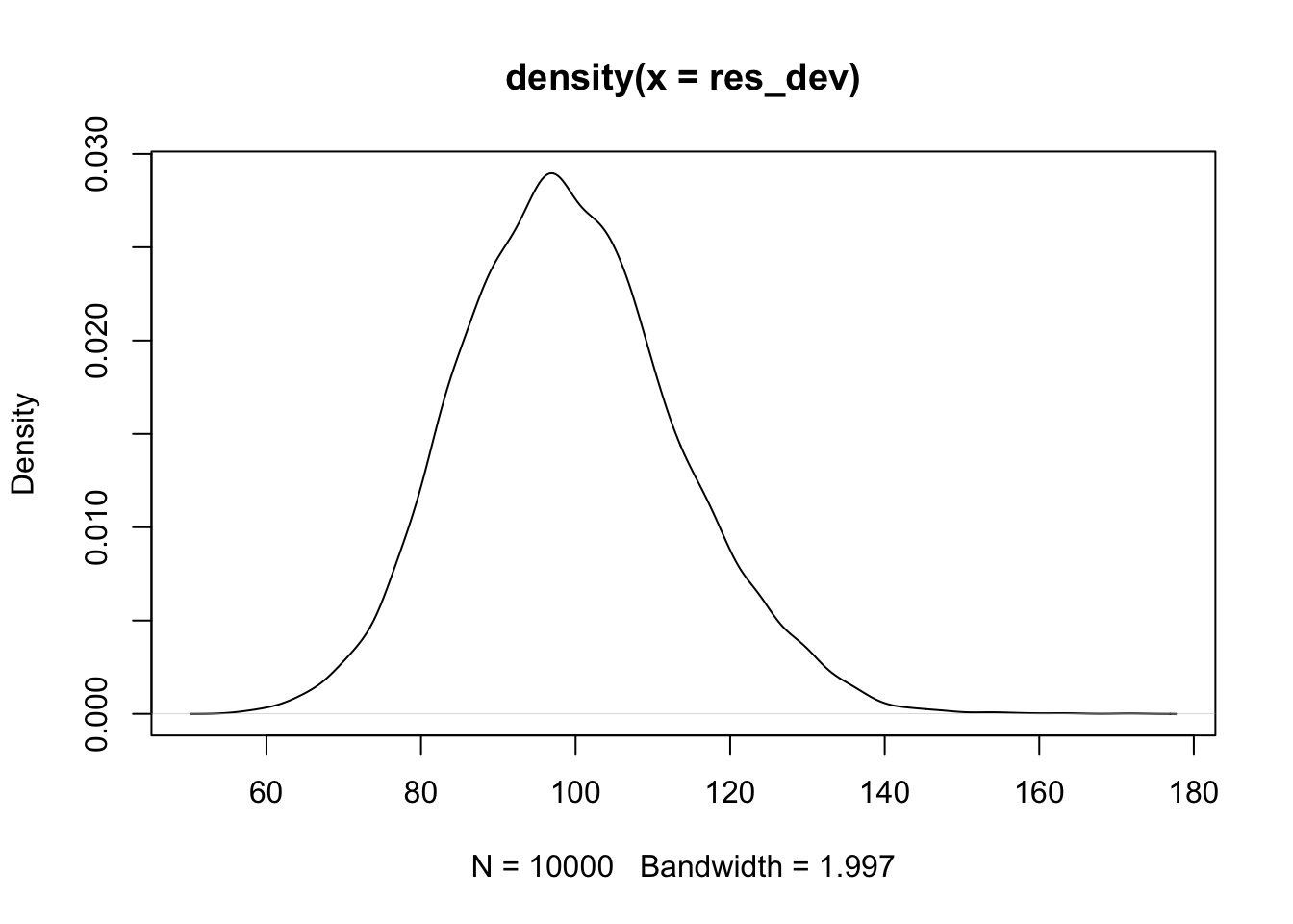To do this, we really have to understand what glm.nb is doing. The dispersion parameter is the value of size in dnbinom, and the coefficients are how we get mu. If we supply those values to rnbinom, we get a simulated data set that should match the data set that we already got. Then, we can check to see whether we are predicting enough zeros in our simulated data set.